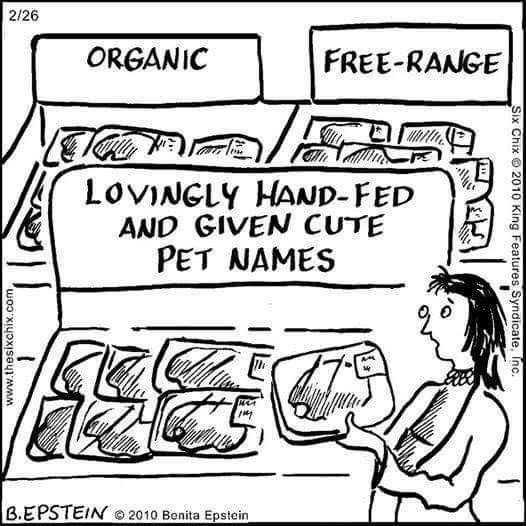 The concept of "humane" treatment in farming contexts is misleading. Labels like "free range", "cage free", "organic", "local" etc soothes consumer conscience without addressing the fundamental wrong — the use and abuse of sentient beings for our ends.